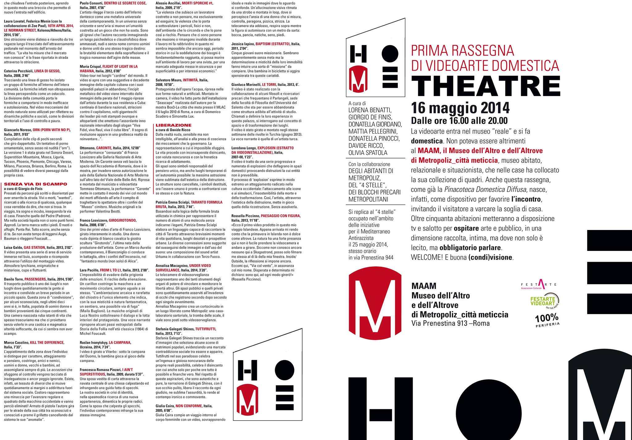 PAESAGGIO CON FIGURA sarà presentato in anteprima italiana nell’ambito di MAAM_HOME THEATRE, prima rassegna di videoarte domestica, che avrà luogo il 16 Maggio a Roma, presso il MAAM_Museo dell’Altro e dell’Altrove di Metropoliz_città meticcia, Via Prenestina 913, dalle ore 16.00 alle 20.00.