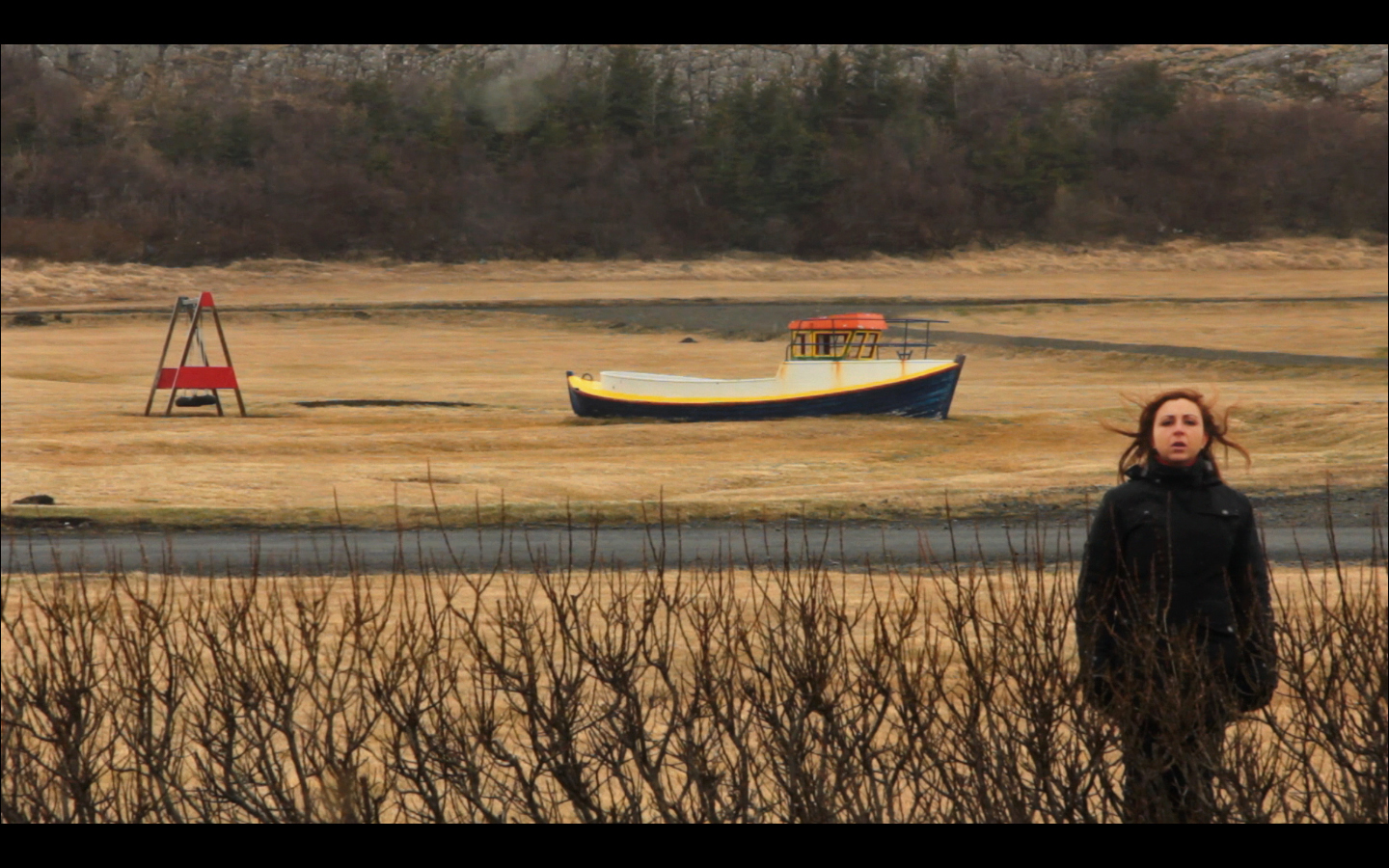 di Rossella Piccinno – Full HD, 16:9, 11’17 », Islanda 2012Nella classifica mondiale dei paesi più women friendly, l’Islanda si conferma da anni al vertice per parità di condizioni tra uomo e donna, nella scuola, nella politica, nel lavoro e nella salute. Questo dato spinge Rossella Piccinno, nel 2012, a intraprendere un viaggio alla ricerca degli archetipi del femminile islandese. Dal suo lavoro, che si colloca tra la performance e il documentario, emerge la scoperta di un femminile sciamanico rintracciabile nel paganesimo pre-cristiano, un tempo in cui le donne erano socialmente rispettate per il proprio ruolo di sacerdotesse e guaritrici. « Paesaggio con figura », è il primo video della serie « Sulle tracce di Þordis », un esperimento Junghiano in cui l’autrice documenta la riattivazione dell’archetipo di Þordis, profetessa islandese del decimo secolo, su di sé e su altre donne incontrate in loco. Un viaggio iniziatico che comincia da un’auto-definizione di sé in un paesaggio mosso da una violenta tempesta di vento. Un tentativo forsennato di stabilire un dialogo con le forze della natura.«Ecco il primo video prodotto in questo mio viaggio Islandese. Appena arrivata mi rendo conto che la primavera in Islanda non è dolce come altrove. La natura ha una forte presenza qui e non è facile prendere la videocamera e andare a girare. Siccome non conosco ancora nessuno qui a Skagastrond, posso solo filmare me stessa al di là della mia finestra. Inside/Outside, la riflessione si impone ancora. Eccomi qui, “Via col vento”, in assonanza col mio nome. Disperata e determinata mi dichiaro: sono qui, ad ogni modo girerò!» (Rossella Piccinno).