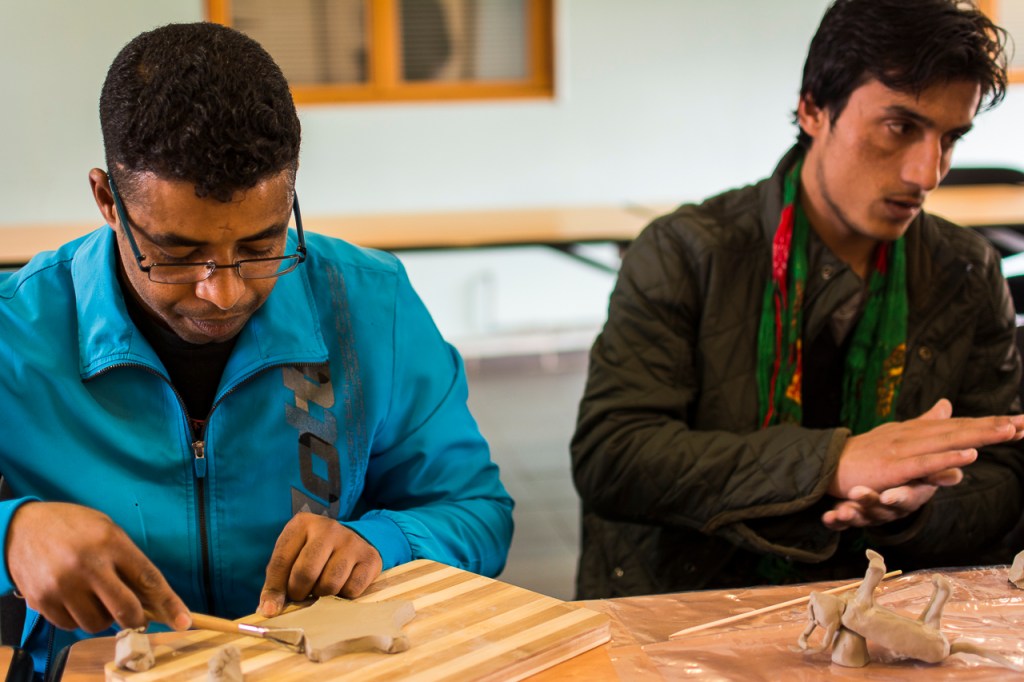 …Savez vous qu’est-ce que c’est le « tabaldi »? C’est le baobab! Je viens de le decouvrir maintenant sur le web après qu’Abdallah, un jeune homme soudanaise que j’ai rencontré cet aprem, m’en a parlé avec tellement de nostalgie! …Il y avait un tabaldi pas loin de son village, grand 6m, il était à côté de la rivière. Il y allait tous les jours pour prendre de l’eau, 2h de marche à chaque fois sous le soleil fort d’Afrique. Après Il lançait des pierres pour faire tomber les fruits, on fait un jus blanc trés doux avec les fruits, et il s’allongeait à l’ombre de ce grand arbre. Quand j’ai lui demandé s’il y avait quelque chose en particulier qu’il lui manque, il a fait ca, Abadallah. Il a tout reconstruit avec l’argile qu’on lui a donné, l’arbre, la rivière, le puits, la petit digue pour impecher à l’eau d’invahir les champs…après il m’a tout raconté dans mon micro-enregistreur. J’etais touchée et contente. En suite l’éducatrice m’a dit qu’Abadallah est quelqu’un de très difficile et que normalement dans le groupe il est un disturbateur…je ne l’aurais jamais dit, tellement il a été gentil avec nous! Pouvoir catalyseur de l’art qui favorise la rencontre!