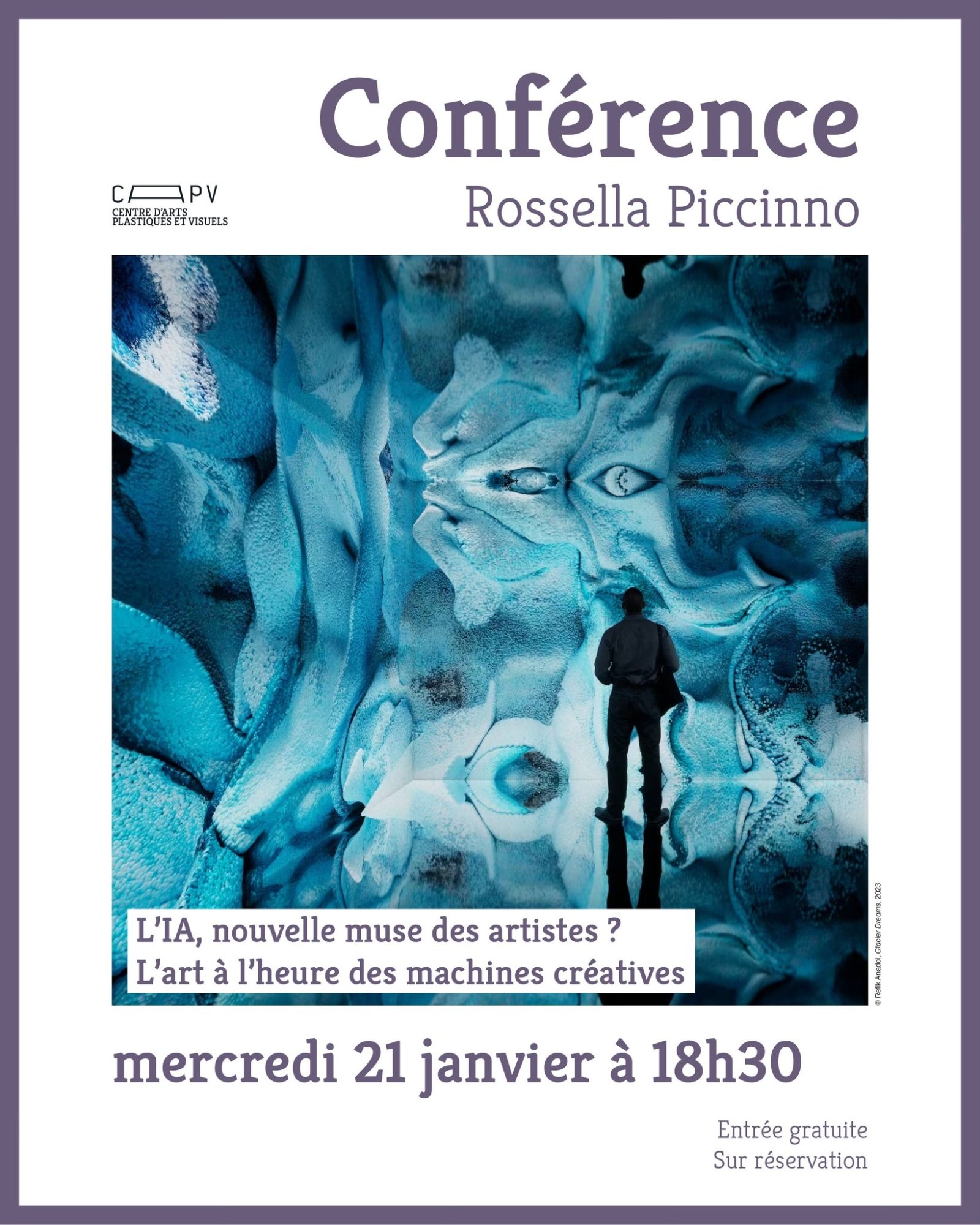 Ma conférence « L’IA, nouvelle muse des artistes ? L’art à l’heure des machines créatives » a lieu aujourd’hui. Je vous donne rendez-vous pour explorer la relation homme-machine et découvrir une sélection d’œuvres réalisées avec l’IA, entre fascination, création et questionnements contemporains.
