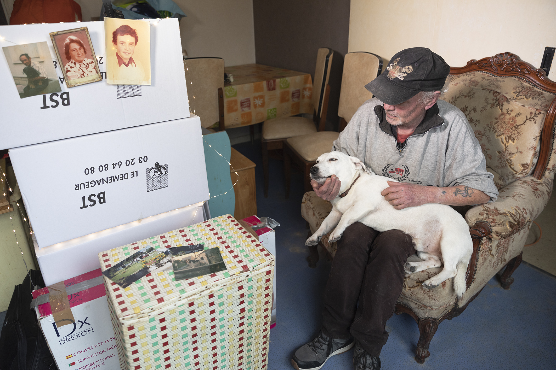 Il y a sept ans, l’une de ses sœurs d’adoption le retrouve grâce aux réseaux sociaux. Elle lui offre une bouteille de champagne pour célébrer leurs retrouvailles. Daniel ne boit pas d’alcool, il préfère la garder en promettant de l’ouvrir au Centre Social pour fêter son départ. La photo est maintenant composée, il suffit de la prendre entre plusieurs assauts des chats, surtout du plus jeune.