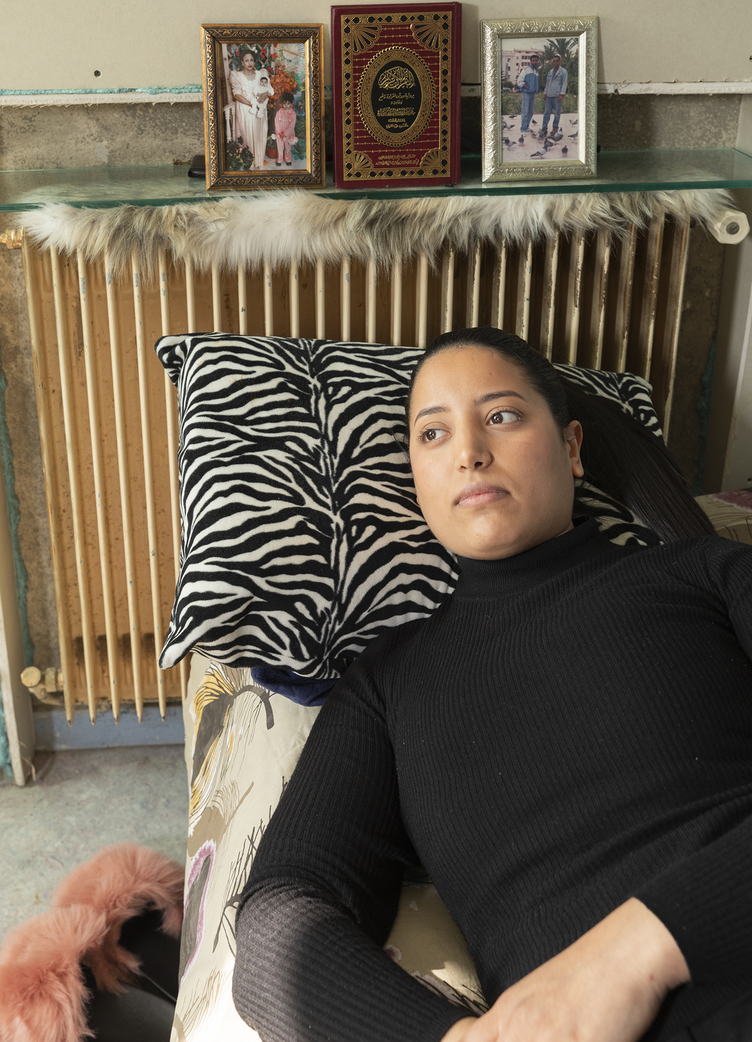 Néanmoins elles veulent être prises en photo ensemble, mais comment montrer cette différence de ressentis ? Je regarde bien leur chambre, Safa est assise sur son lit à côté de la fenêtre, elle me donne une sensation de stabilité et d’enracinement profond.