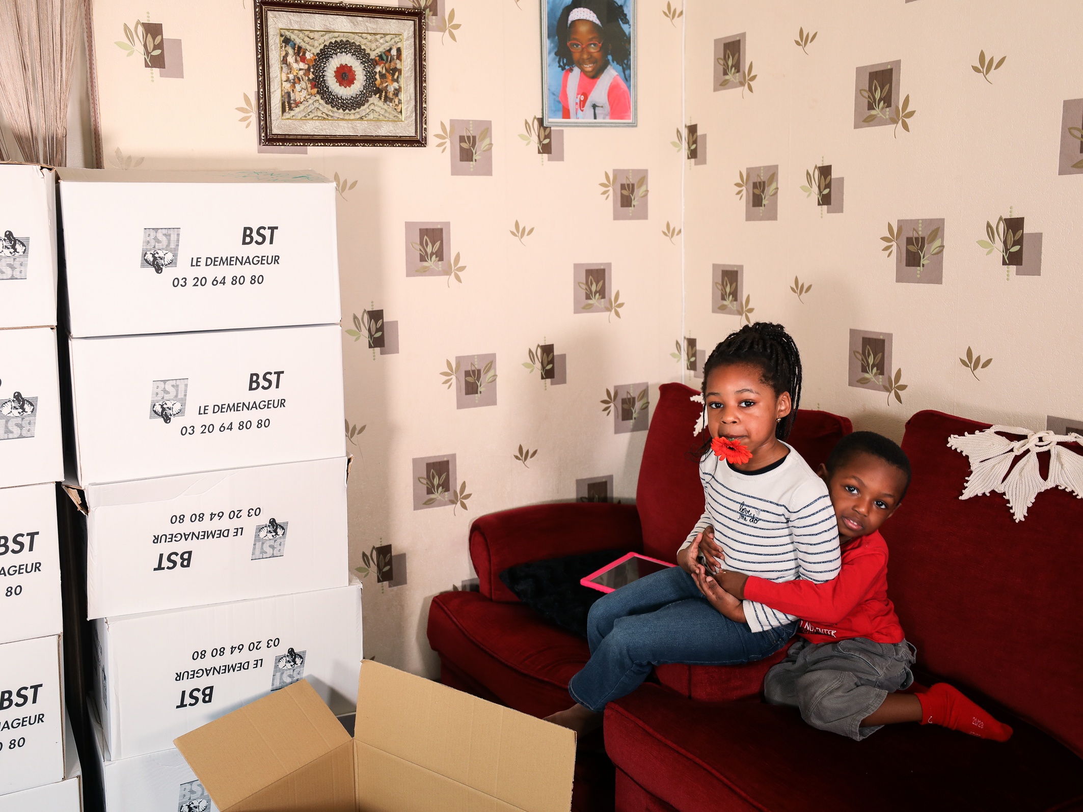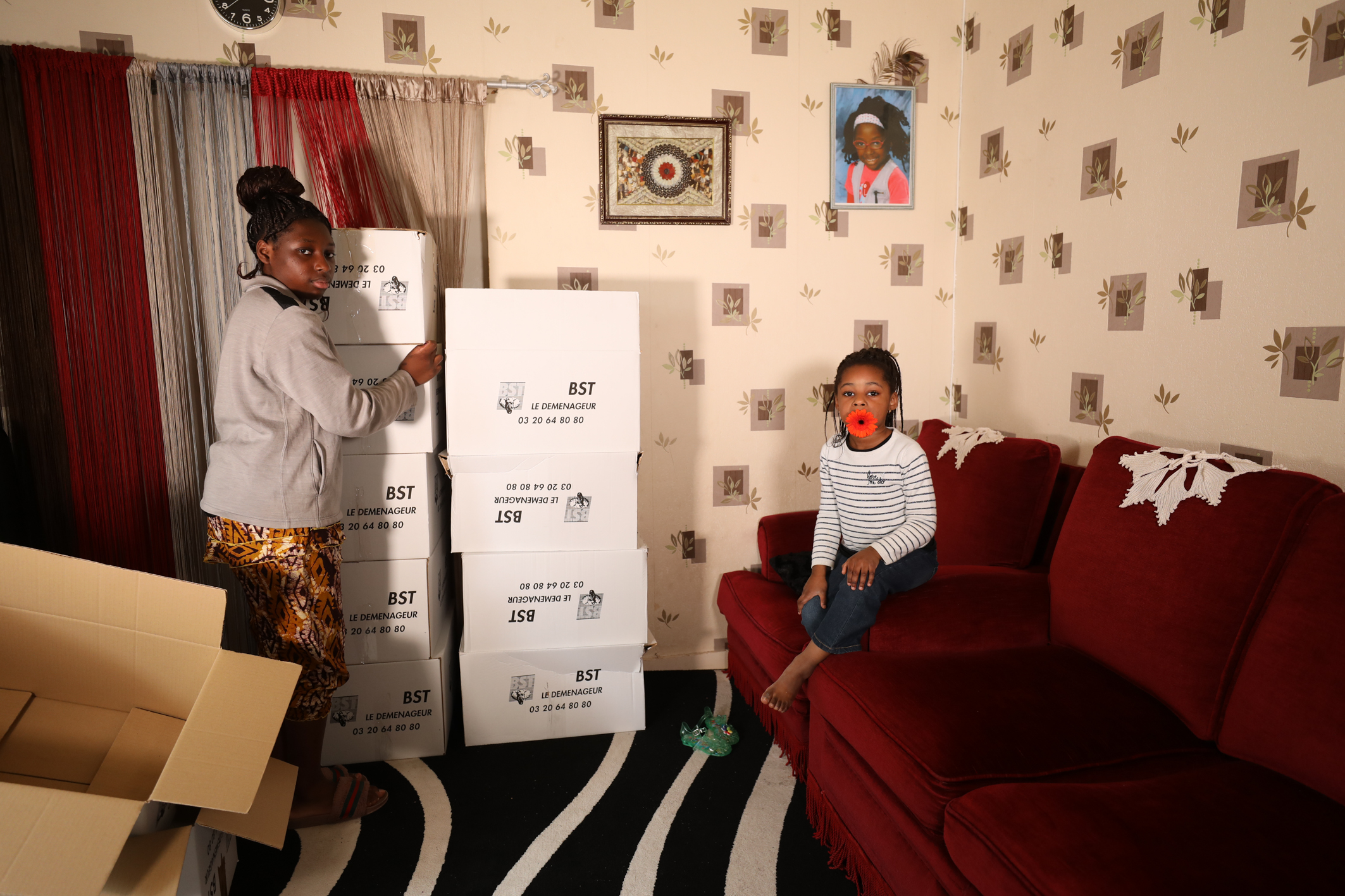Je monte à l’étage, dans la chambre où les filles m’attendent avec impatience. On avait déjà travaillé ensemble, une fois, pour des portraits d’habitants en extérieur et elles avaient apprécié la démarche.